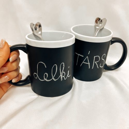 Krétával írható bögre - szíves kiskanállal